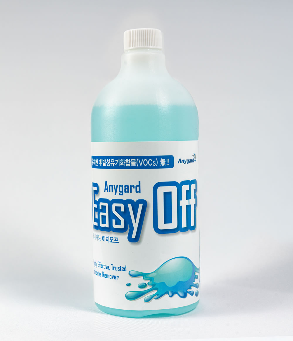Easy Off es un producto especialmente formulado para remover residuos de adhesivos en cristales, facilitando la preparación de superficies antes de instalar nuevas películas de polarizado.