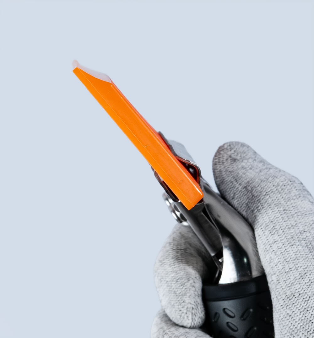 Uno de los principales beneficios de la Orange Crush Blade es su superficie de baja fricción, que permite deslizar la herramienta sobre la película sin generar marcas.